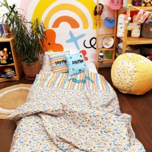 Introducing comforter – the perfect way to keep your kids cozy and comfortable! Our 100% Washed Cotton fabric, with a thin layer of Cotton sheet inside and three layers stitched together, provides unbeatable comfort. Plus, it comes in a range of vibrant prints and colors, so you can find something to perfectly fit your child’s bedroom decor. The set includes One Single Comforter and Comforter Storage Bags. You can also have their name printed on the comforter, making it a unique and special gift.