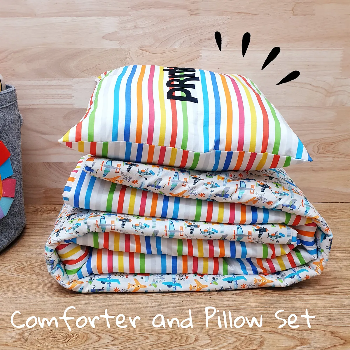 To complete the look, we also offer an adorable Pillow Doll, as well as a matching cushion for extra comfort. With a comforter, you can make sure your kids stay snug and comfortable all night long.