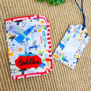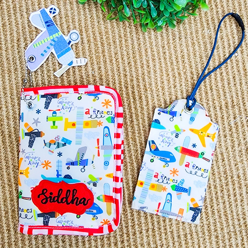 A personalized Aeroplane Print Passport Cover make your child the most stylish mini traveler around! Crafted with utmost precision, this passport cover and luggage tag set is the perfect way to travel in style.