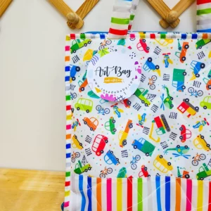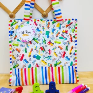 The art bag is the perfect companion for your child’s adventures. It is made from a combination of cotton and waterproof polyester fabric, ensuring their belongings are kept safe and dry. The bag has one zip closure and two compartments for all their essentials. We recommend personalizing the bag with your child’s name to add a special touch. The art kit bag is perfect for kids and is stylish, functional and durable.