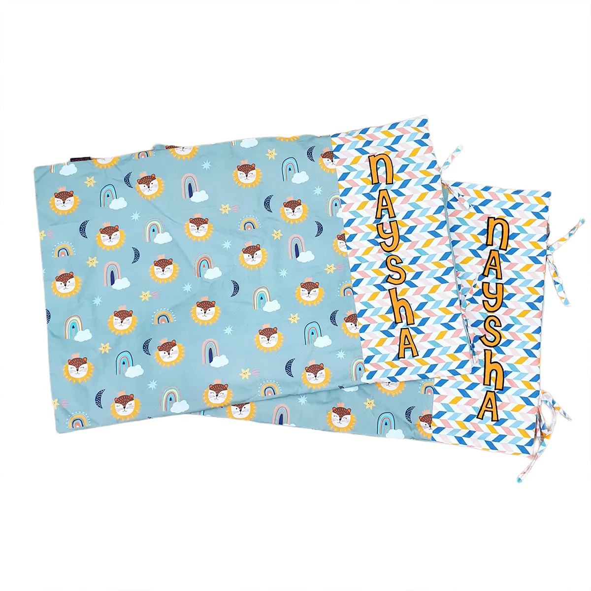 - Bedsheet + Two pillow covers and 1 name cushions