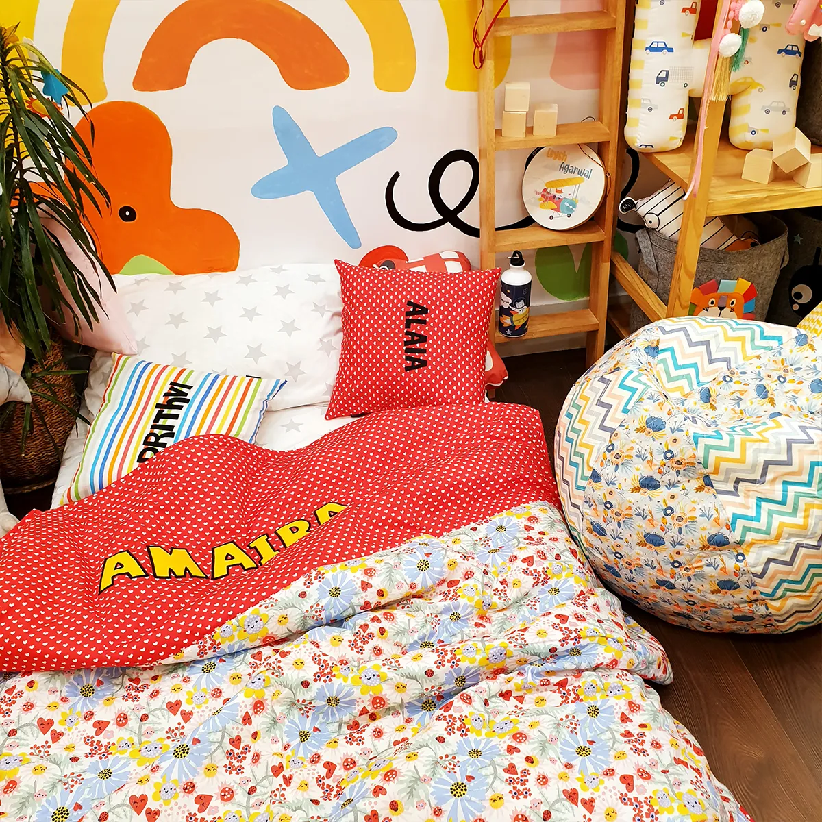 Introducing comforter – the perfect way to keep your kids cozy and comfortable! Our 100% Washed Cotton fabric, with a thin layer of Cotton sheet inside and three layers stitched together, provides unbeatable comfort. Plus, it comes in a range of vibrant prints and colors, so you can find something to perfectly fit your child’s bedroom decor. The set includes One Single Comforter and Comforter Storage Bags. You can also have their name printed on the comforter, making it a unique and special gift.