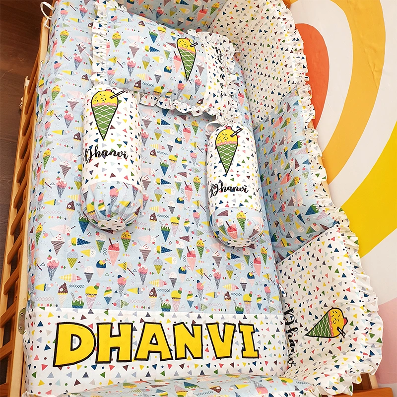 - Measures/Size (Approx): Quilted blanket (40×50)″; Pillow cover (17×11) Inches; Cot Sheet (62×44)″; Bolster cover (15×5) Inches and fillers accordingly.