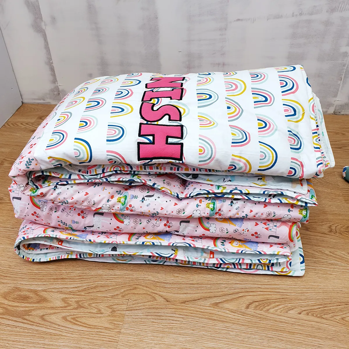 Introducing comforter – the perfect way to keep your kids cozy and comfortable! Our 100% Washed Cotton fabric, with a thin layer of Cotton sheet inside and three layers stitched together, provides unbeatable comfort. Plus, it comes in a range of vibrant prints and colors, so you can find something to perfectly fit your child’s bedroom decor. The set includes One Single Comforter and Comforter Storage Bags. You can also have their name printed on the comforter, making it a unique and special gift.