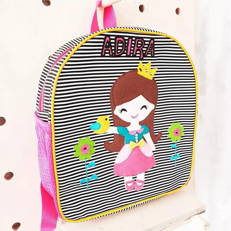 In this backpack that features the princess design, we have chosen the stripes background which is a great contrast for babies. Don’t forget to check out our baby backpack for this design as it is a real rage.