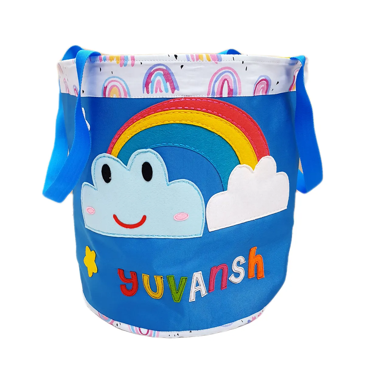 Gather your kid’s messes with Rainbow Blue Toy Basket . This basket comes with a raibow theme with a blue base colour. Its fun design can notch up the decor in any room.