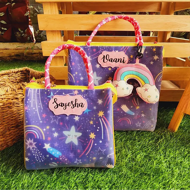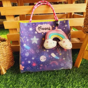 Introducing the Tote Bags for Kids! Perfect for any outing or school activity, this tote bag is designed to make life easier for kids and moms. It features one main compartment with a zip closure and three side compartments, providing plenty of space for your little one’s necessities. This bag covers you, whether it’s carrying snacks, books, or toys. Plus, it’s made with waterproof fabric that will keep your kid’s belongings safe and secure. So if you’re looking for a stylish and functional bag that you or your kid can carry, Tote Bags is the choice!